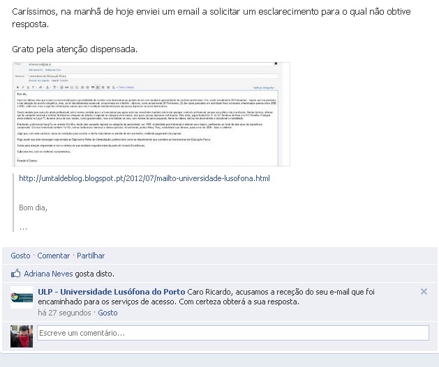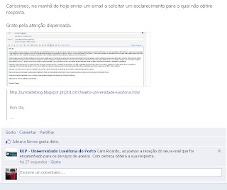 A minha mensagem foi encaminhada para os serviços de acesso da Lusófona